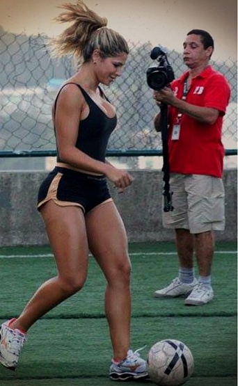 На сей раз футболист воспользовался паузой в игровом графике своей команды и разместил фото своей жены Даниэлы Соузы, играющей в футбол (между прочим, матери троих детей!).