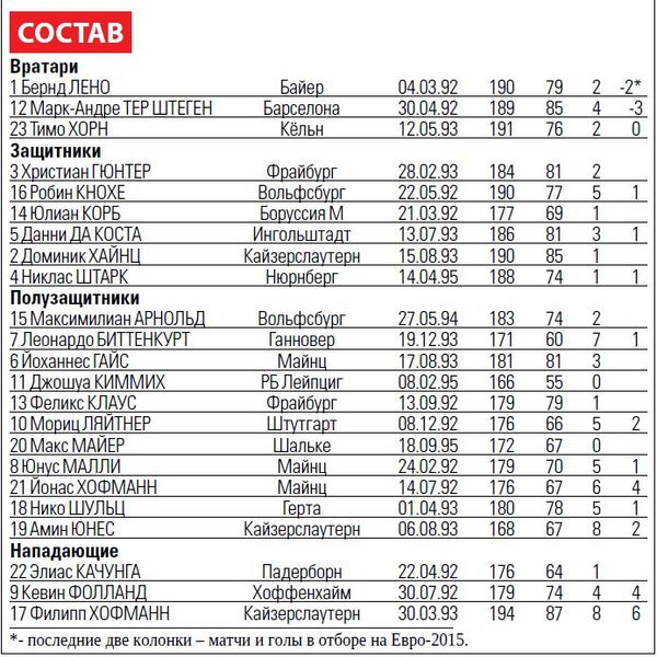 Еще нужно отметить не вошедших в список Эмре Джана и Леона Горецку. Эти двое травмированы, хотя не факт, что Горецка был бы вызван, будучи здоровым. У Хрубеша он сыграл всего дважды и давно. Зато Джан был в составе в обеих играх сентября 2014-го от звонка до звонка и произвел очень сильное впечатление. На 82-й минуте встречи с Румынией он чувствительно получил по ногам от Баласы и с тех пор на поле не выходит. Получить травму в матче, который его команда выиграла 8:0 – что может быть обиднее?! Позже выяснилось, что у него серьезная травма, требующая несколько недель на восстановление. Эмре Джан – это, как теперь говорят, системообразующий игрок, «центр притяжения» команды Хрубеша, и не факт, что его потерю можно восполнить. Остальные из списка годичной давности начали отбор, но затем по разным причинам из команды выпали, на смену им пришли другие. Но кадрового голода в германском футболе нет. В последние годы идет ощутимый приток молодых игроков с германскими паспортами, только выбирай. Хрубеш выбирает и делает это с удивительной точностью. Другие германские тренеры юношеских и молодежных команд тоже отбирают удачно, но результат с отобранными Хрубеш дает чаще и больше.