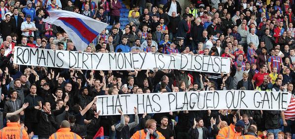 "Грязные деньги Романа (Абрамовича) - это зараза, которая отравляет нашу игру", - написано на баннере.