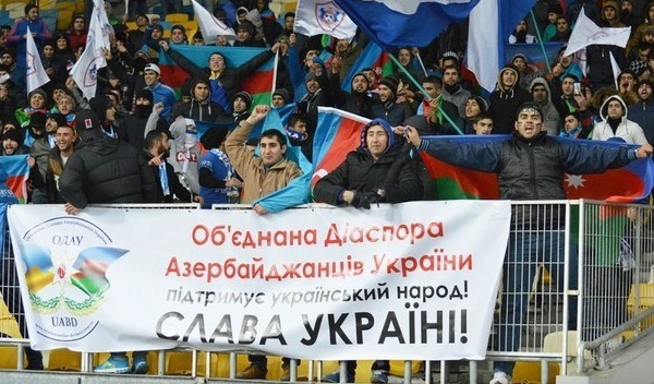 Фанаты азербайджанского «Карабаха» на матче с «Днепром» в Киеве поддержали Украину. Болельщики в фанатском секторе гостей на НСК «Олимпийский» вывесили баннер в поддержку Украины, причем на украинском языке.