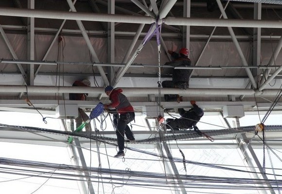 – В первую очередь хочется отметить слаженность действий: и работников стадиона, и сотрудников специализированных компаний, и сборной бригады промышленных альпинистов, которых мы привлекли. Благодаря четкой организации сейчас мы имеем положительную динамику в восстановлении фасада. В первый же день было экстренно обследовано состояние конструкций, получены предварительные заключения. Сразу же привлекли промышленных альпинистов и специалистов по металлоконструкциям. На второй день были проведены срочные мероприятия по недопущению дальнейшего разрушения фасада.