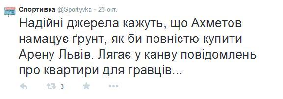 Також, повідомляється, що в донецькому клубі розглядають можливість купівлі «Арени Львів»