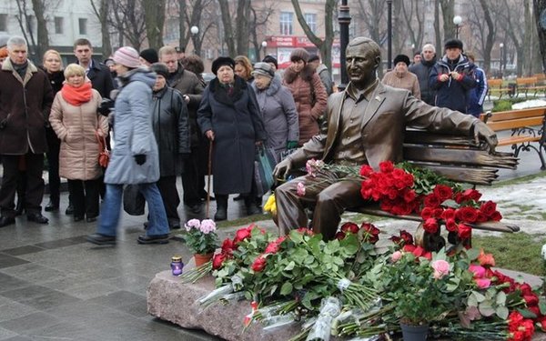 Чиновники, друзья и близкие бывшего мэра и президента «Ворсклы» возложили цветы у подножья памятника.