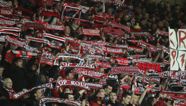Фанаты французского "Генгама" на стадионе "Генгама" перед началом матча плей-офф Лиги Европы с киевским "Динамо".