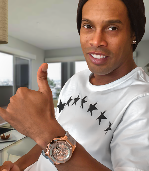 Легендарный футболист Роналдинью продемонстрировал часы, подаренные ему Леброном Джеймсом.