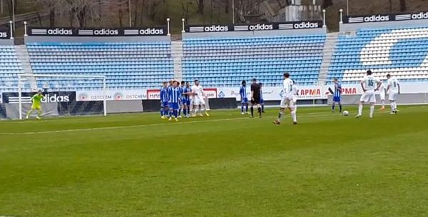 Полтавчане исполнили опасный штрафной в контрольном матче против "Динамо".
