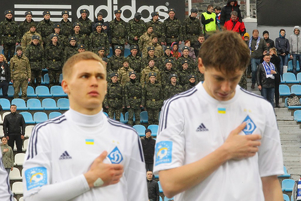 На поле ДЮФШ-15 футбольный день для участников и гостей турнира не закончился. ФК «Динамо» пригласило всех посетить игру чемпионата Украины «Черноморец» - «Динамо», выделив для этого сектор №14, а в перерыве матча вице-президент клуба Алексей Семененко и Андрей Дащенко рассказали зрителям об идее проведения турнира и всесторонней помощи, которая оказывается семьями погибших в АТО военных.