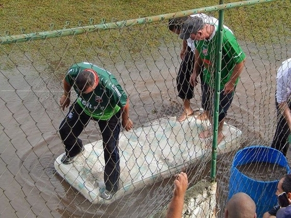 Клубы из бразильского штата Риу-Гранди-ду-Сул не хотели переносить игру на другой день и высушили поле матрасами после отказа дренажной системы.