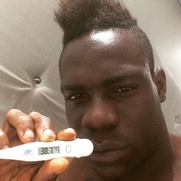 Очень скучаю по футбольному полю", - написал в своем инстаграме Балотелли, продемонстрировав фото с электронным градусником, согласно которому у игрока температура 38,7.