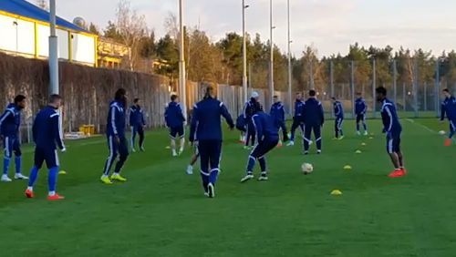 Игроки киевского "Динамо" играют в "квадрат" на открытой тренировке перед завтрашним матчем 1/4 финала Лиги Европы с "Фиорентиной".