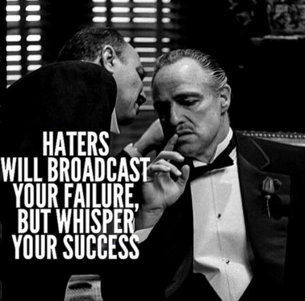 Цю фразу можна перекласти так: "Ненависники безперестанку розповідатимуть про вашу невдачу, але шепотітимуть про ваші успіхи".
