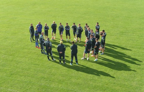 Зупинилася українська делегація в готелі «Pullman», залишившись повністю задоволеною наданими їй умовами. За словами головного тренера «синьо-жовтих» Олександра Петракова, хлопці почувалися виснаженими після 30-годинної подорожі. Втім, це не завадило команді ввечері вийти на легке тренування. Пройшло воно доволі жваво, чому сприяла приємна, фактично футбольна погода: близько 15 градусів тепла на тлі майже повного безвітря.