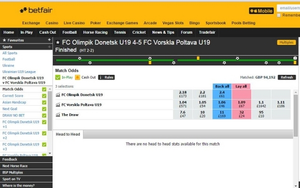На бирже ставок betfair зафиксирован очередной всплеск активности на матчи донецкого клуба.