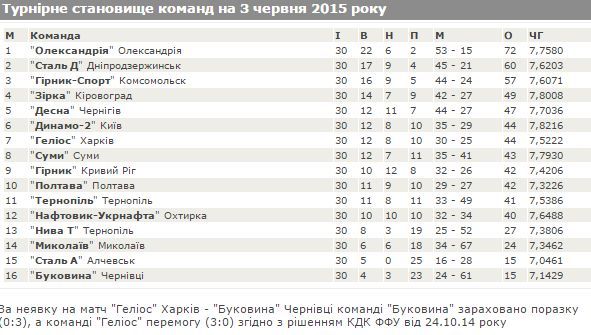 Стоит отметить уверенную победу ФК «Александрии». Если эта команда не остановится в своем развитии, ей под силу закрепиться в Премьер-лиге. Неожиданным на первый взгляд выгладит бронза клуба из Комсомольска «Горняк-Спорт». Подопечные Игоря Жабченко в своем дебютном сезоне в первой лиге достаточно уверенно заняли третье место. А на некоторых турнирных отрезках казалось, что «Горняк-Спорт» сможет зацепиться и за второе. Но днепродзержинская «Сталь» сумела удержать серебро в своих руках.