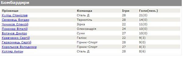 Гонку бомбардиров уверенно выиграл Станислав Кулиш из днепродзержинской "Стали".