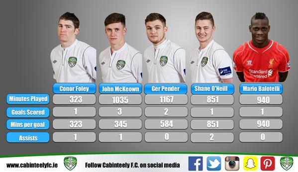 Ирландский клуб "Кэбинтили", выступающий во втором по силе дивизионе страны, в шутку заявил о нежелании подписывать контракт с форвардом "Ливерпуля" Марио Балотелли. В официальном твиттере клуба была опубликована статистика форвардов клуба Конора Фоули, Джона Маккиоуна, Гера Пендера и Шейна О'Нила в сравнении с показателями итальянца.