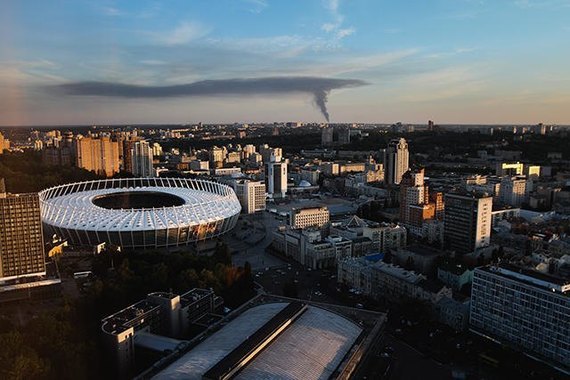 Как сообщает сайт канала "24", пожар на нефтебазе под Киевом видно даже из района стадиона НСК "Олимпийский" и приводит соответствующее фото.