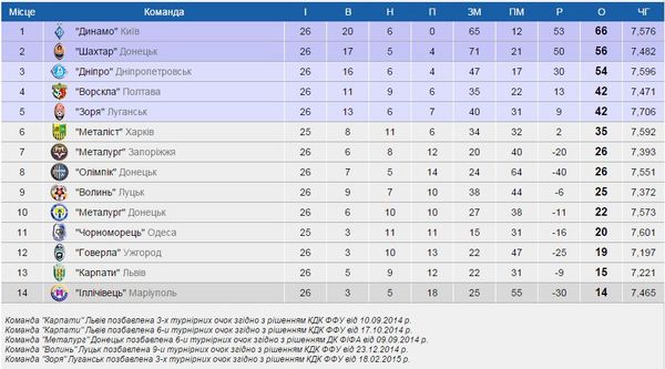 В связи с решением КДК ФФУ о снятии очков с "Зари", "Волыни" и "Металлурга" Д в турнирной таблице чемпионата Украины произошли изменения. Луганская "Заря" опустилась с четвертого на пятое место, а донецкий "Металлург" - с восьмого на десятое.