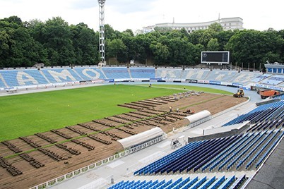 - По окончанию сезона руководство «Динамо» приняло решение заменить газон. Новое поле должно быть самого высокого качества, ведь в новом сезоне на нем «Динамо» будет проводить матчи в юношеской Лиге чемпионов. Начиная с нынешнего понедельника началось снятие дерна старого газона.