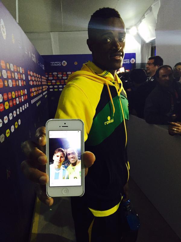 Нападающий сборной Ямайки Дешорн Браун сделал селфи с главной звездой аргентинской сборной Лионелем Месси. Футболист «Волеренги» Браун играл в матче Аргентина – Ямайка (1:0) с первых минут и был заменен на 78-ой минуте матча. После финального свистка Дешорн Браун поспешил на футбольное поле, где попросил Лионеля Месси улыбнуться на камеру. Дешорн Браун сделал заветный снимок, которым с удовольствием хвастался перед представителями СМИ уже в подтрибунном помещении.