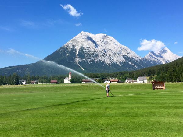 Руководитель компании ESEM Кристиан Маховски, занимающейся организацией сборов киевского "Динамо", в своем Твиттере опубликовал фото, на котором идет подготовка поля к тренировке чемпиона Украины.