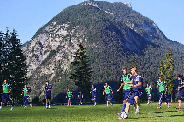 Все началось с небольшого кросса, маршрут которого тренер по физподготовке Виталий Кулыба проложил по лесной тропинке вдоль высоченной альпийской гряды. Девушки на велосипедах, проезжая мимо, с нескрываемым любопытством проводили взглядом группу парней в темно-синих спортивных костюмах. Тем же, сложилось впечатление, было не до прекрасного пола: первые после отпуска тренировки всегда отнимают много сил.