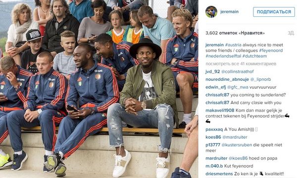 Полузащитник "Динамо" Джермейн Ленс в Instagram опубликовал фото с футболистами "Фейенорда",сделанное на сборе в Австрии.