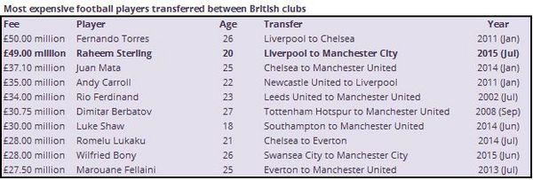 Трансфер полузащитника Рахима Стерлинга, который перейдет в "Манчестер Сити" за 49 млн фунтов стерлингов, станет самым дорогим среди игроков до 21 года в АПЛ, как сообщает Твиттер Infostrada Sports.
