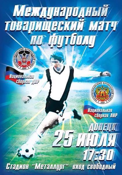Матч между сборными ДНР и ЛНР, который должен был состояться 25 июля на стадионе "Металлург" в Донецке, перенесен на неопределенный срок. Об этом сообщает страница ассоциации мини-футбола в Донецке «Вконтакте». Отметим, что террористы успели присвоить этому матчу статус "международного".