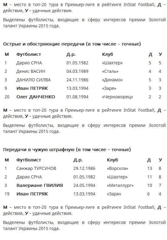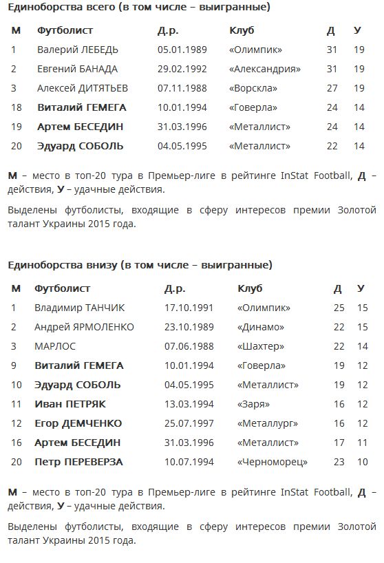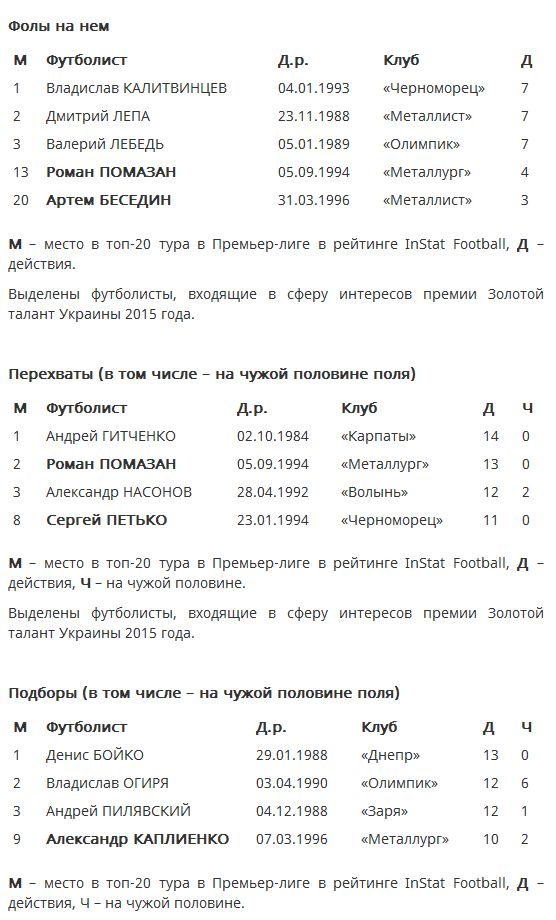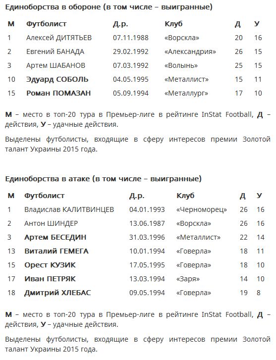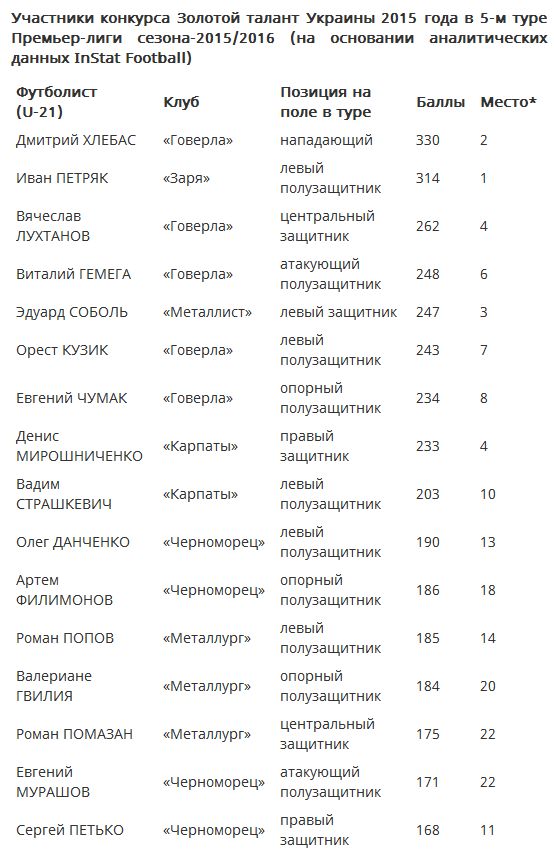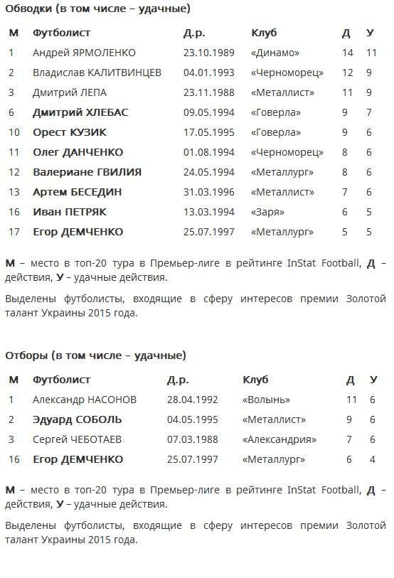 Выделены футболисты, входящие в сферу интересов премии Золотой талант Украины 2015 года.