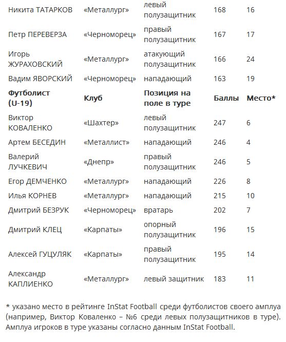 InStat Football: Ярмоленко - лучший игрок 5-го тура, Хлебас - 4-й
