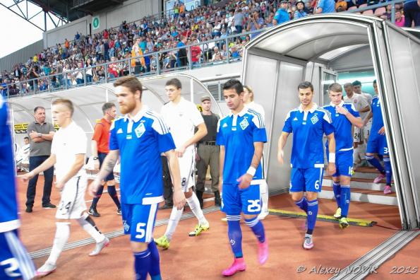 Футболисты "Зари" и "Динамо" выходят на матч в Запорожье.