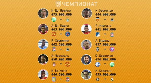 Самый дорогой переход лета, как частенько случается, был оформлен незадолго до закрытия трансферного окна: 30 августа Де Брёйне официально поменял немецкую Бундеслигу на английскую Премьер-лигу. «Вольфсбург» получил за 24-летнего бельгийского плеймейкера 75 млн евро. Кевин возвращается в Англию, где до этого он пережил не очень-то удачный опыт в «Челси». Правда, теперь Де Брёйне кажется зрелым игроком. В прошлом сезоне в Бундеслиге бельгиец сыграл 34 матча, в которых забил 10 голов и отдал 20 голевых передач, заслужив титул футболиста года в Германии. Тем не менее в «Ман Сити» Де Брёйне ждёт совсем другой уровень конкуренции, так что и сам он признаёт: это решение – определённый риск.