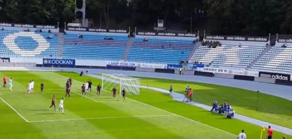 Киевское "Динамо" забивает победный гол в ворота "Порту" в 1-м туре Юношеской лиге УЕФА.