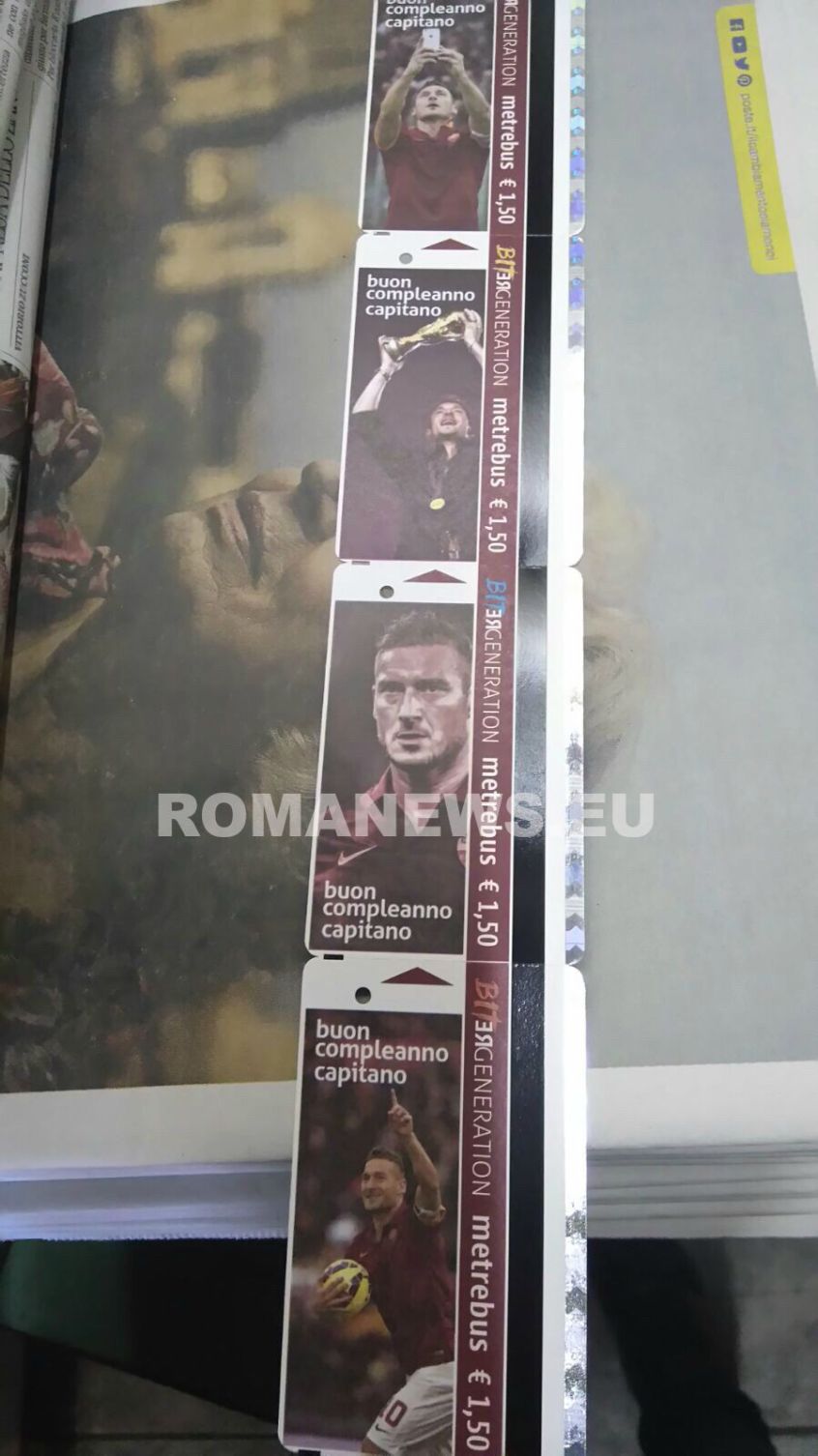 Ко дню рождения полузащитника в управлении общественного транспорта столицы Италии сообщили о выпуске лимитированной серии билетов на автобусы и метро, на которых будет изображён Франческо Тотти. Об этом сообщает romanews.eu.
