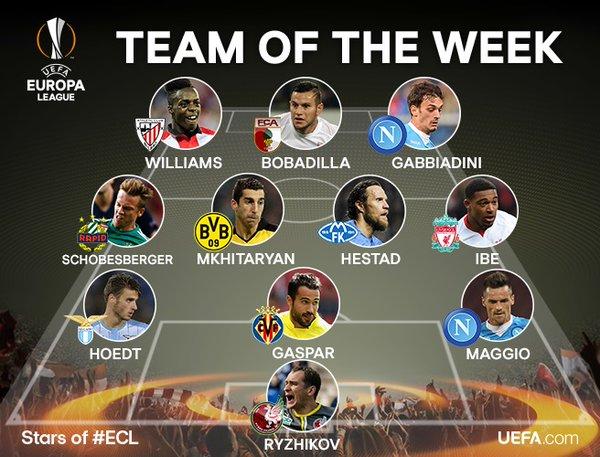 УЕФА составил символическую сборную четвертого тура Лиги Европы. В нее вошли: