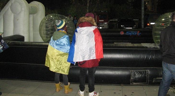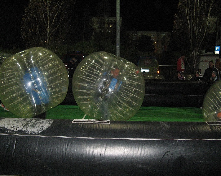 У центрального входа — три больших аттракциона («зорб-футбол», футбольный бильярд и футбол с препятствиями) и множество маленьких и совсем крохотных (миниатюрные ворота, несколько площадок для футбольных конкурсов.