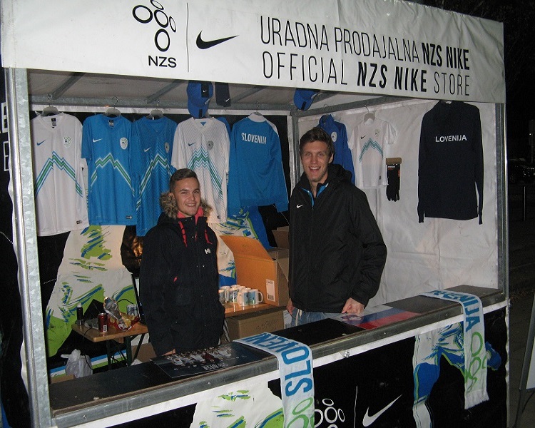 Тут же и официальная торговая точка с атрибутикой сборной. Вот здесь цены кусаются: оригинальная игровая футболка словенской сборной (кстати, у этой балканской команды на самом деле очень красивая форма) — 72 евро, реплика — 36 евро. Обычная футболка, как и шарф к матчу — 10 евро. Почти через каждые 50 метров можно купить футбольную дудку, на пример южноамериканской вувузелы (правда, пользуются ли они спросом, сказать не могу).