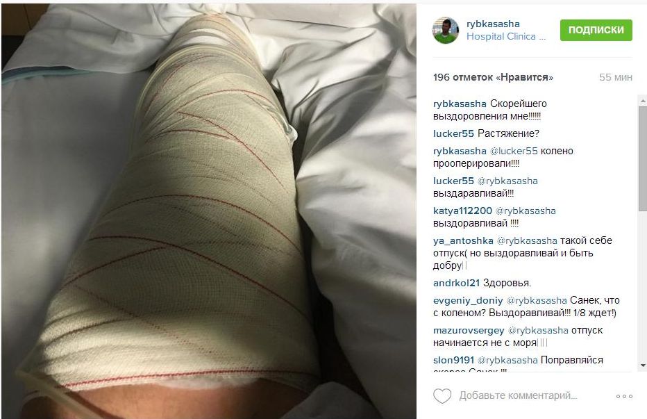 Вратарь "Динамо" Александр Рыбка в Испании перенес операцию на колене. Об этом Рыбка сообщил в Instagram.