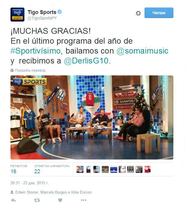 — Tigo Sports (@TigoSportsPY) 23 декабря 2015
