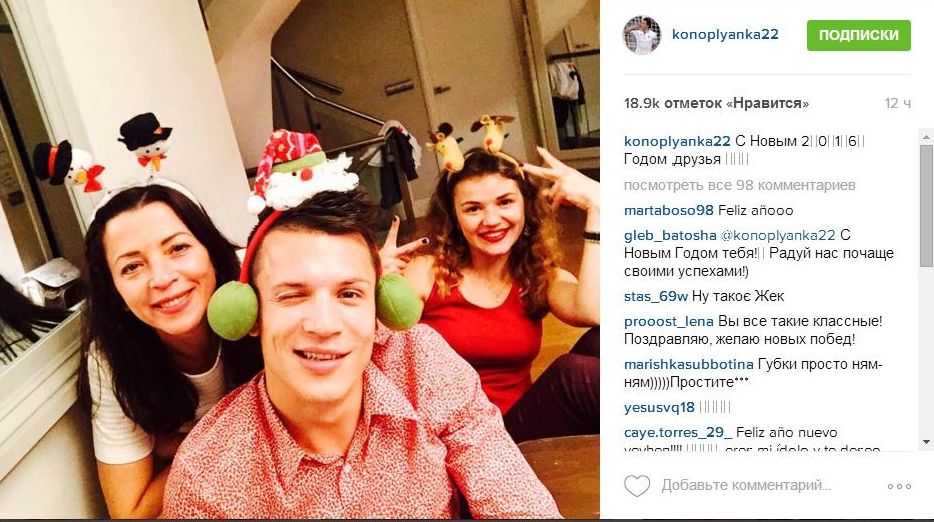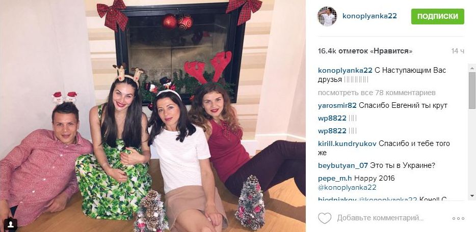 Полузащитник сборной Украины Евгений Коноплянка поделился в Instagram фото с празднования Нового года.
