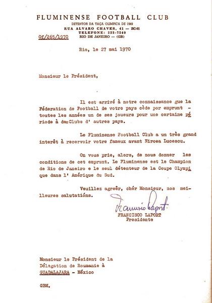 Все эти годы я не рассказывал об этом факте, только в 2015-м передал копию румынскому журналисту. Дело в том, что в мае 1970 года в Министерство иностранных дел Румынии пришло официальное письмо из Бразилии: президент «Флуминенсе», который на тот момент являлся чемпионом Бразилии, хотел видеть меня в своем клубе.