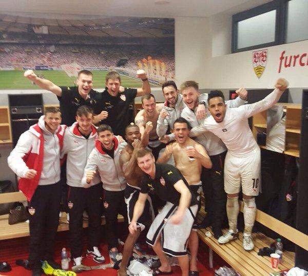 Защитник "Штутгарта" Эмилиано Инсуа в своем Твиттере выложил фото из раздевалки после победы "швабов" над "Гамбургом". Напомним, что Артем Кравец забил победный гол.
