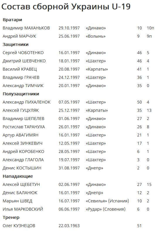 Отметим также отсутствие в списке динамовца Богдана Михайличенко и львовянина Владимира Сеницы. Оказывается, за удаления в матче первого этапа квалификации с Турцией обоих наказали трехматчевой дисквалификацией, из-за чего оба футболиста основной обоймы сборной U-19 не сыграют в элит-раунде.