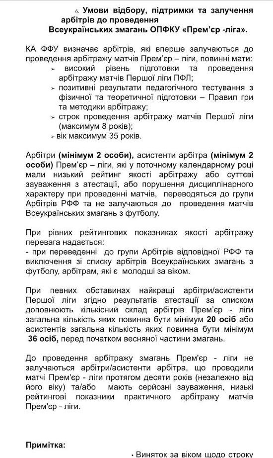 «Мені дуже важко зрозуміти, чому П’єрлуїджі Колліна не дотримується закону, тобто регламенту. Він декларує про правила гри, хоча сам їх не дотримується. Можна навести багато прикладів, коли він прямо порушував регламент Комітету арбітрів ФФУ. Наприклад, якщо арбітра карають, то з Прем’єр-ліги його мають опускати у регіональні змагання. А що ми бачимо? Арбітр Кузьмін, за свідченням очевидців, приїхав вранці, у день матчу, в готель у нетверезому стані, не вийшов на матч, а його перевели до Першої ліги. Грися відсторонили у Першу лігу, а потім попри віковий ценз повернули до еліти. У регламенті чорним по білому написано: „Максимальний вік підвищення до Прем’єр-ліги 35 років“. Грися підняли в еліту в 39 чи 40 років. Як можна так порушувати правила гри? Чому на це закривають очі в федерації? Тоді для чого регламент? Коли Колліна тільки-но прийшов в федерацію, то сказав, що за дві незадовільні оцінки буде опускати арбітрів до нижчих ліг. Двох людей покарали — Євгена Венгера та Олександра Дерда. Про першого забули, а Дерда за дивним збігом обставин повернули. Кажуть, його тато, екс-арбітр, зіграв не останню роль у цьому. Прикладів порушень регламенту комітету арбітрів можна навести ще з десяток. Але хто це все контролює? Це ж Колліна, напевне, ніхто йому нічого не може сказати».