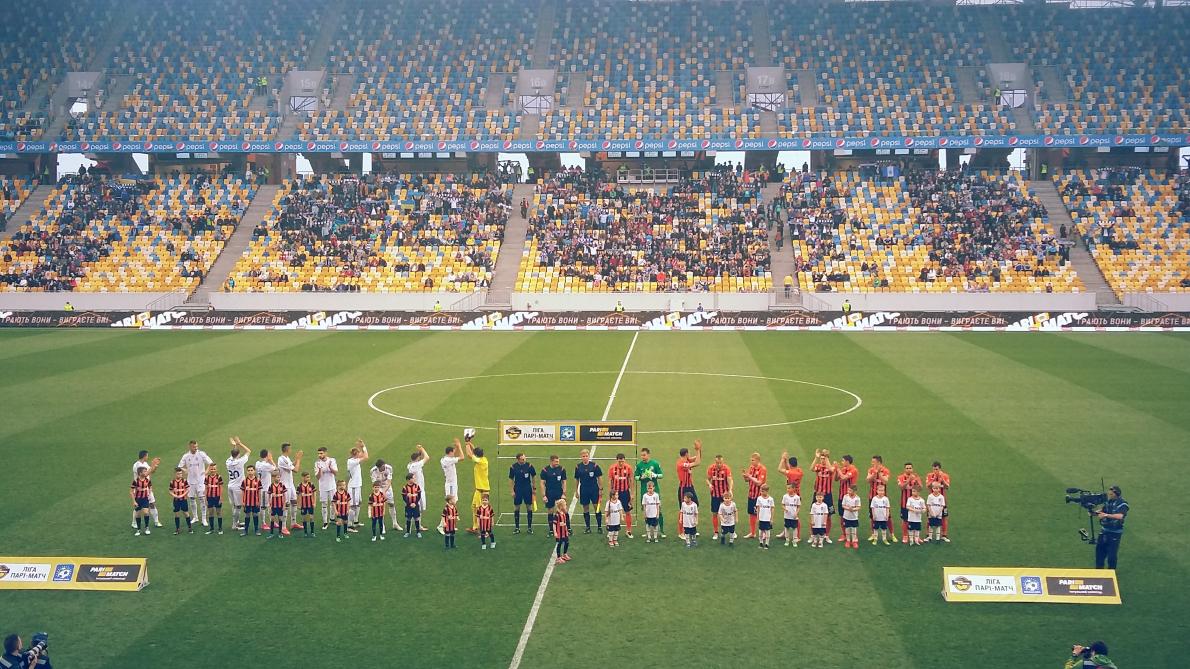 Игроки "Динамо" и "Шахтера" перед матчем 24-го тура чемпионата Украины на "Арене Львов".