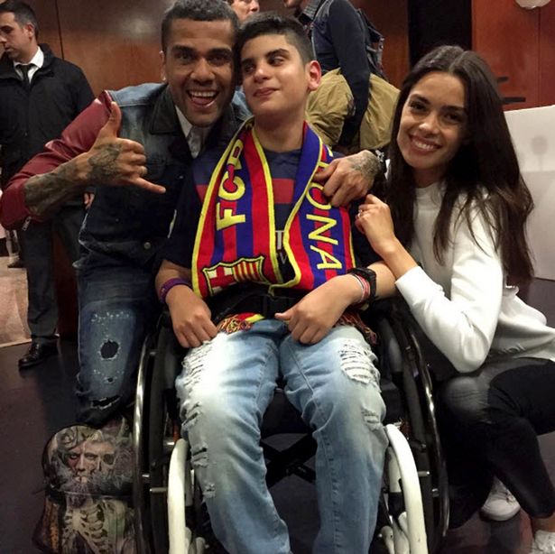 Во время разминки Алвес заметил юного Карлоса - слепого фаната, прикованного к инвалидной коляске, который сидел на скамейке запасных возле девушки бразильца.