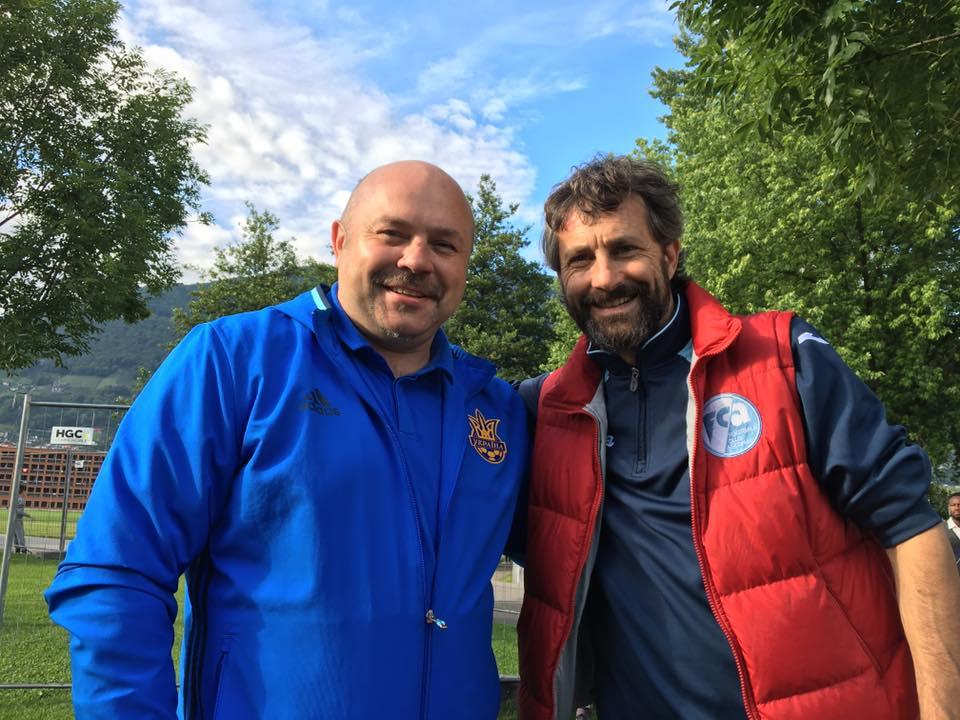 Пресс-атташе сборной Украины Александр Глывинский в своем Facebook сообщил о том, что тренировку "желто-синих" в Асконе посетил бывший игрок "Милана" Маурицио Ганс.