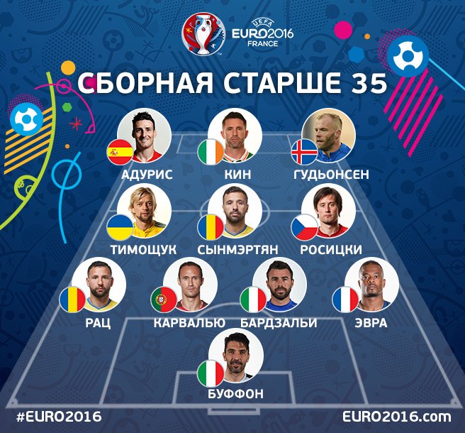 Футболист сборной Украины Анатолий Тимощук попал в символическую сборную игроков Евро-2016 старше 35 лет по версии Uefa.com
