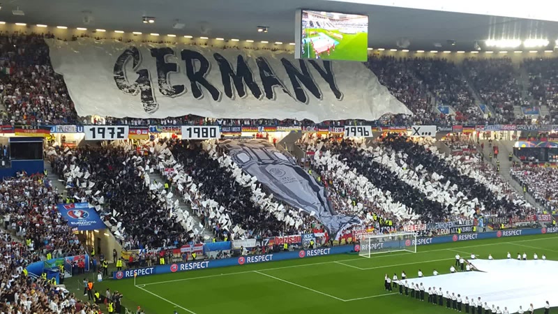 Перед началом матча 1/4 финала ЕВРО-2016 между сборными Германии и Италии фанаты Бундестима вывесили огромный баннер в поддержку своей команды, а также напомнили, в каких годах немцы выигрывали чемпионат Европы.